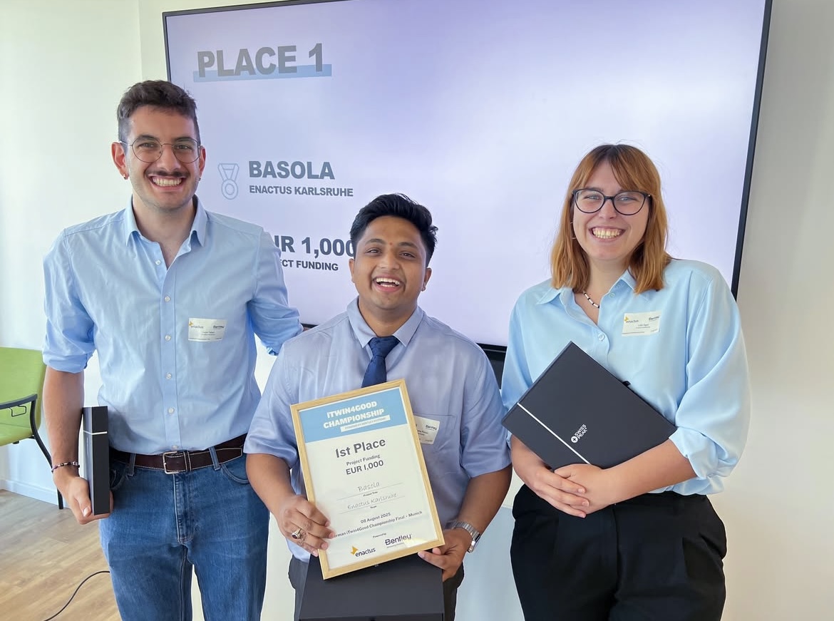 Am 8. August haben wir bei den nationalen Vorausscheidungen der #iTwin4GoodChallenge im Münchner Office von Bentley Systems den 1. Platz geholt – inklusive 1.000 € Preisgeld.